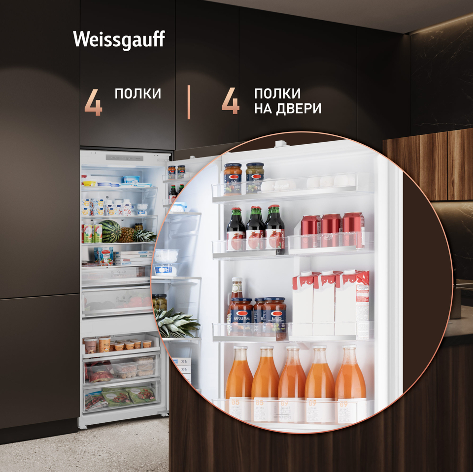 Встраиваемый холодильник с морозильной камерой Weissgauff WRKI 1970 Total NoFrost Inverter Premium EcoFresh Inox