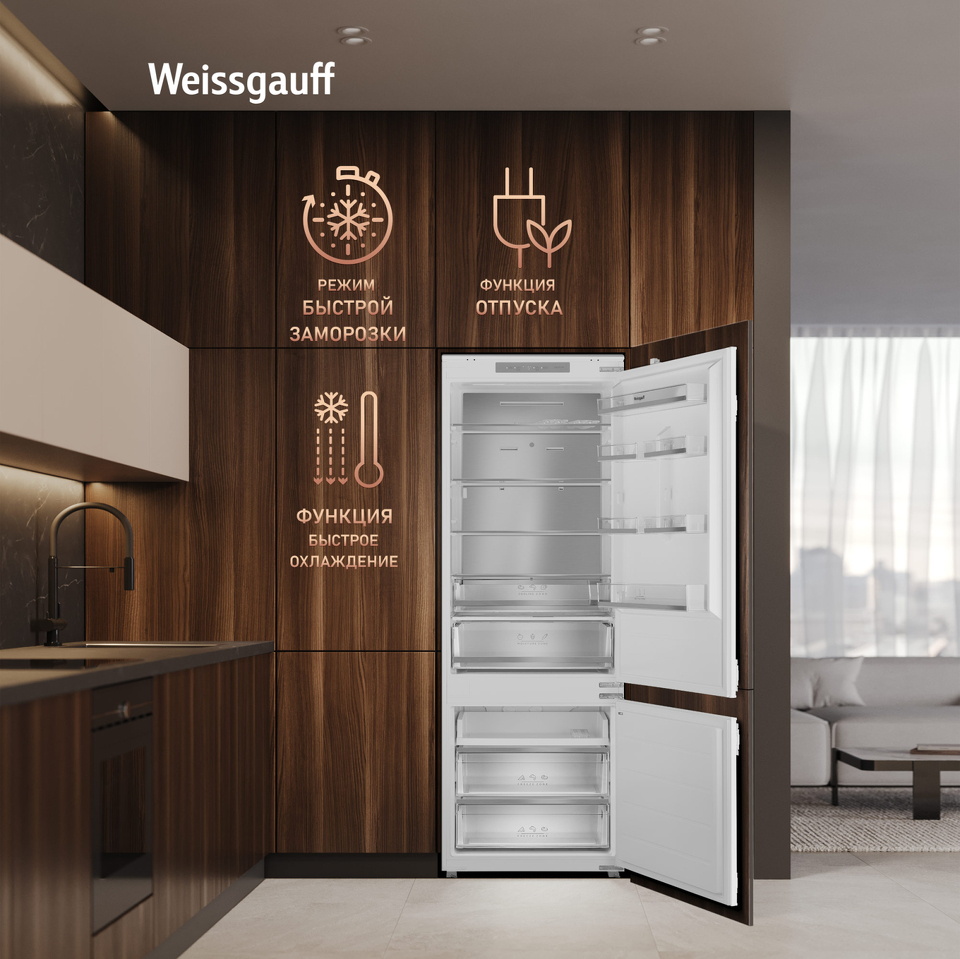 Фото Встраиваемый холодильник с морозильной камерой Weissgauff WRKI 1970 Total NoFrost Inverter Premium EcoFresh Inox
