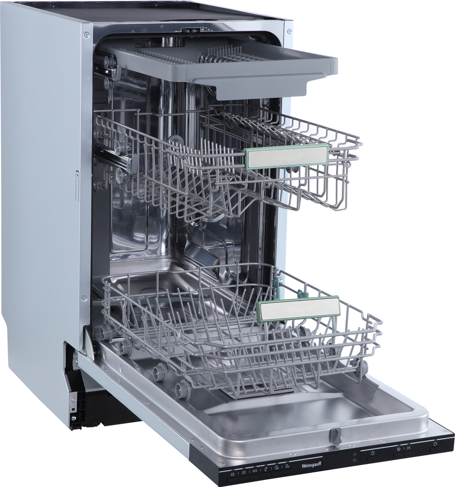 Встраиваемая посудомоечная машина Weissgauff шириной 45 см воплощает в себе один из наших ключевых принципов: достойное качество по разумной цене! Эта модель оснащена двумя функциональными корзинами и обладает вместимостью 10 комплектов посуды. А 6 эффективных программ всегда помогут подобрать оптимальный режим в зависимости от типа посуды и уровня загрязненности.