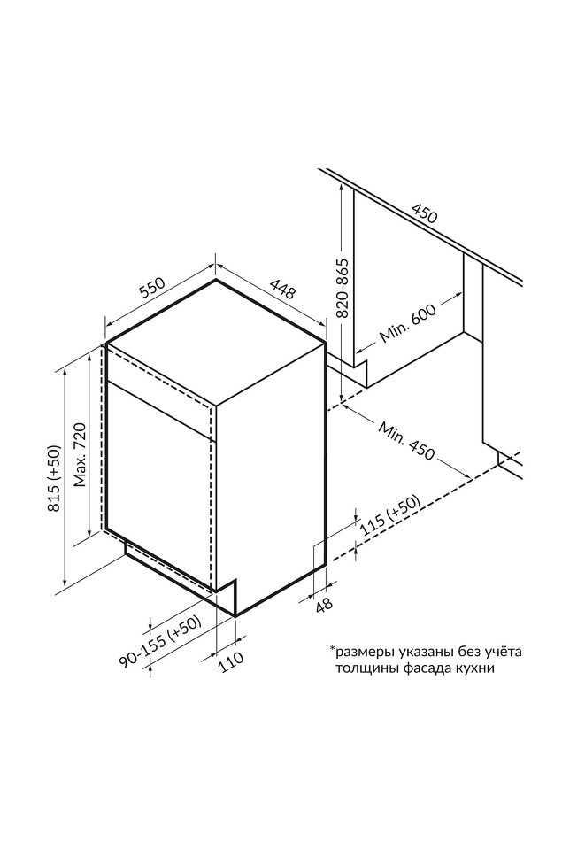 Ширина ниши для установки, см 45