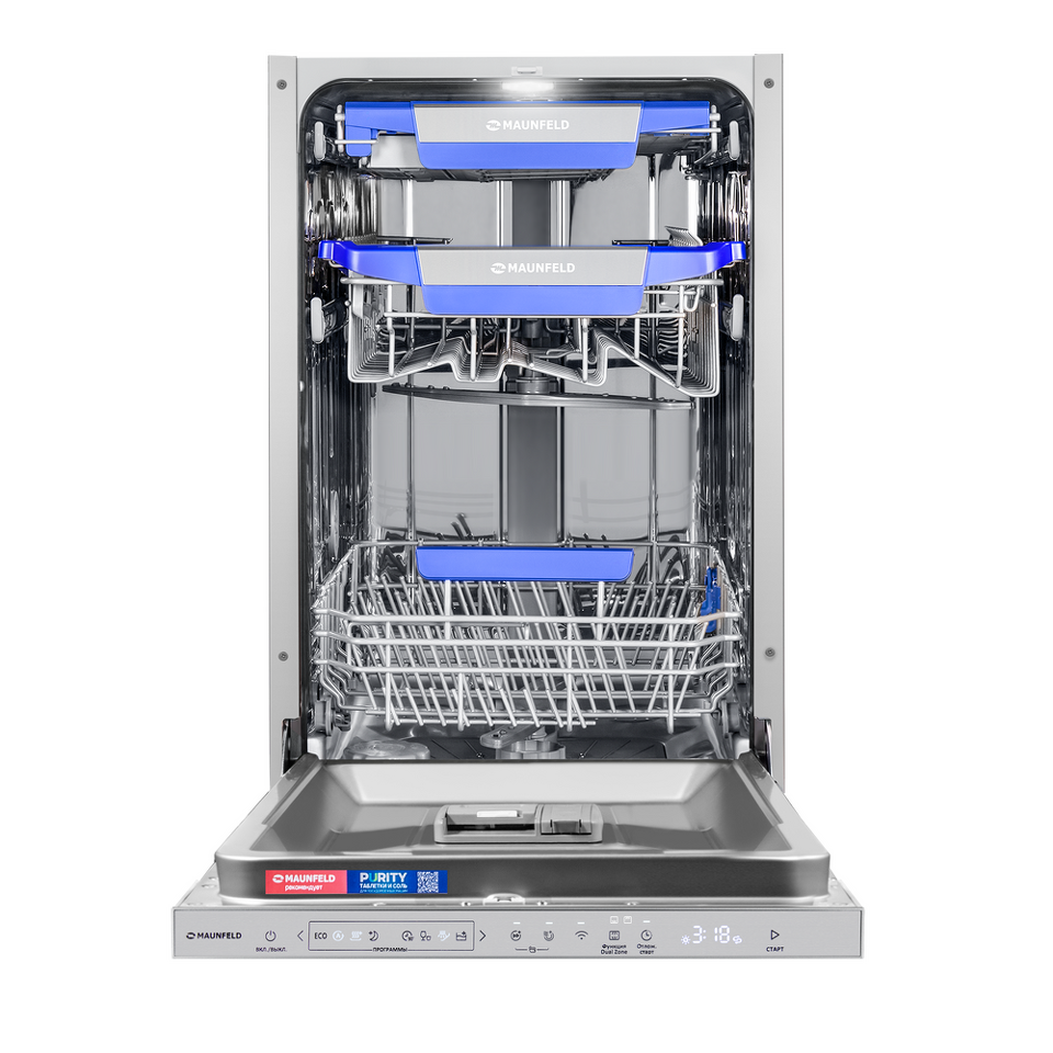 Фото Посудомоечная машина 45см встраиваемая Maunfeld MLP45330T Smart Beam Inverter Wi-Fi