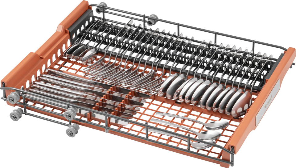 Три корзины, позволяющие разместить отдельно от остальной посуды в верхнем лотке сразу все ложки, вилки и ножи, обеспечивая при этом их наилучшее мытьё!