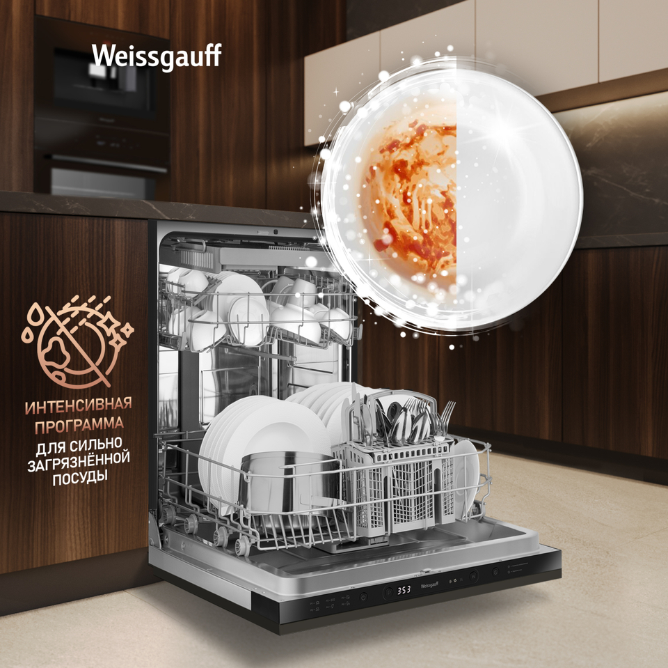 Полноразмерная посудомоечная машина Weissgauff шириной 60 см, рассчитанная на 14 комплектов посуды, функцией автоматического открытия дверцы, не только удивит богатством функциональных решений, но и обеспечит идеальный результат сушки посуды: 3 корзины позволят расположить посуду оптимальным образом для достижения наилучшего качества мытья, а наличие 6 программ для мытья позволит подобрать оптимальный режим в зависимости от количества посуды и степени загрязнения.