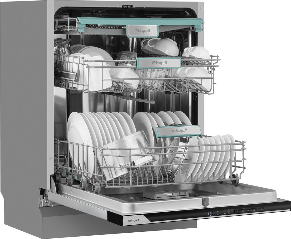 Полноразмерная посудомоечная машина Weissgauff шириной 60 см, оснащенная проекцией времени до окончания цикла работы на пол, рассчитанная на 14 комплектов посуды, не только отлично будет смотреться на вашей кухне, но и обеспечит идеальный результат: 3 корзины позволят расположить посуду оптимальным образом для достижения наилучшего качества мытья, а наличие 5 программ позволит подобрать оптимальный режим в зависимости от количества посуды и степени загрязнения.