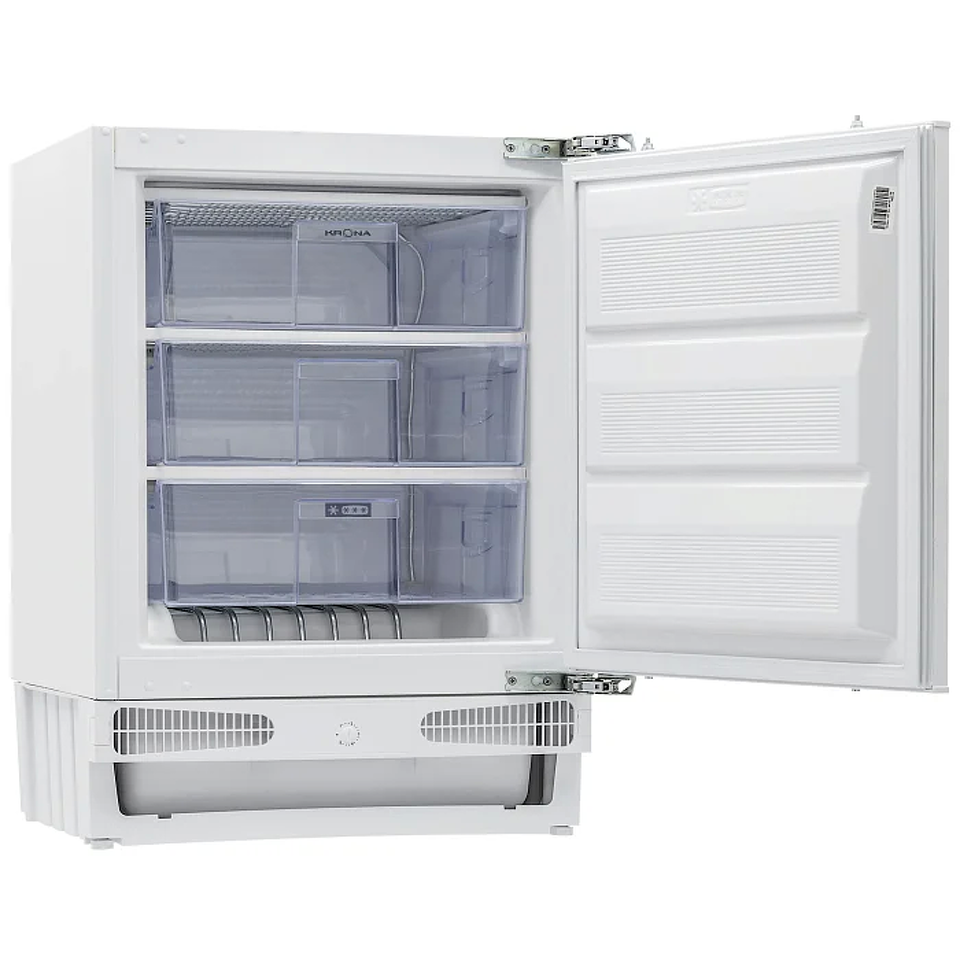 Встраиваемый однокамерный морозильник WIESEL выполнен в белом цвете шириной встраивания 60 см. Морозильная камера оснащена 3 ящиками и формой для льда. Для удобства пользователя в модели предусмотрено механическое управление, при помощи которого можно отрегулировать температуру охлаждения в диапазоне -16°C — -24°C. Морозильник оборудован статической системой охлаждения с ручной разморозкой. Благодаря данной системе модель WIESEL отличается высоким классом энергоэффективности А+, благодаря которой годовое потребление электроэнергии составляет всего 177 кВт, а также низким уровнем шума 41 дБ.