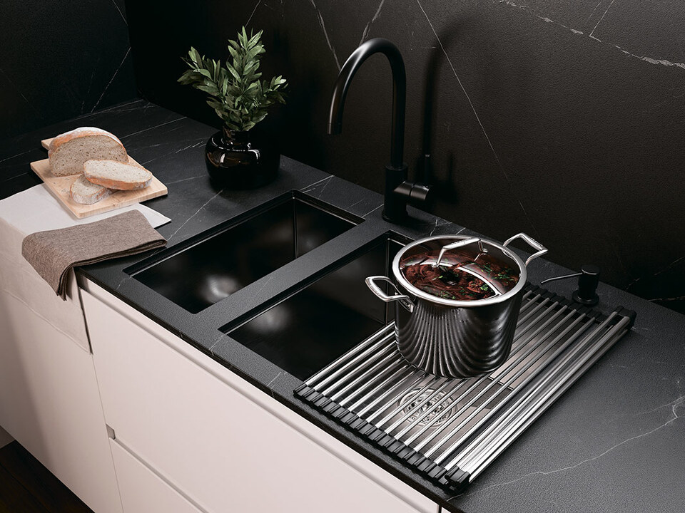 Стильные коврики «Ролл-мат» расстилаются на кухонных мойках или на столешнице. Используют для сушки овощей, посуды, а также для размещения горячих кастрюль и сковородок. Обеспечивают дополнительное рабочее пространство. Легко сворачиваются в компактный рулон и занимают мало места при хранении. Подходят для кухонных моек с шириной чаши до 420 мм.
