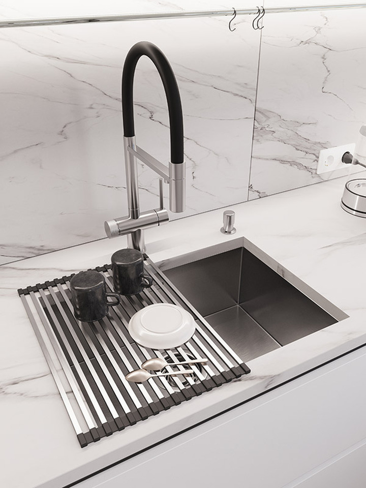 Обеспечивают дополнительное рабочее пространство. Легко сворачиваются в компактный рулон и занимают мало места при хранении. Подходят для кухонных моек с шириной чаши до 420 мм.