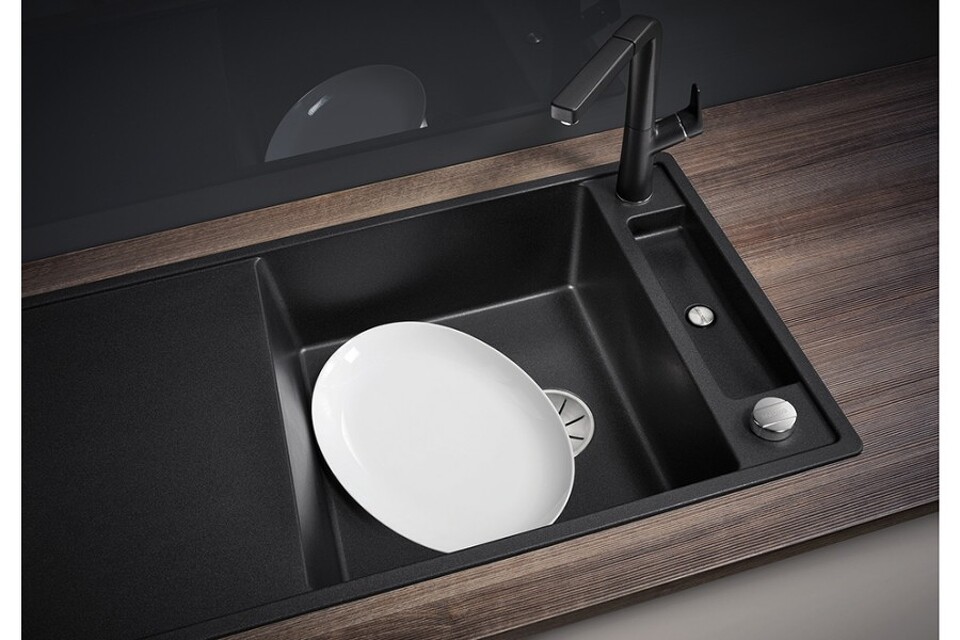 Модель устанавливается в шкаф шириной 60 см. В комплекте поставляется разделочная доска из безопасного стекла белого цвета, которая легко скользит вдоль поверхности мойки, а также отводная арматура InFino® с клапаном-автоматом.