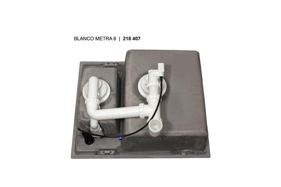Бланко Metra 6 состоит из двух чаш — большой с клапаном автоматом и маленькой с обычным корзинчатым вентилем. Прямоугольная форма позволяет устанавливать доску для нарезки продуктов на каждую из них, дополнительно увеличивая рабочую площадь.