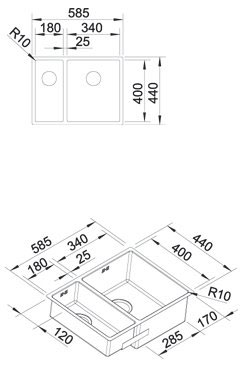 Металлическая мойка Blanсo CLARON 340/180-IF (чаша справа) нерж.сталь зеркальная полировка с отв. арм. InFino