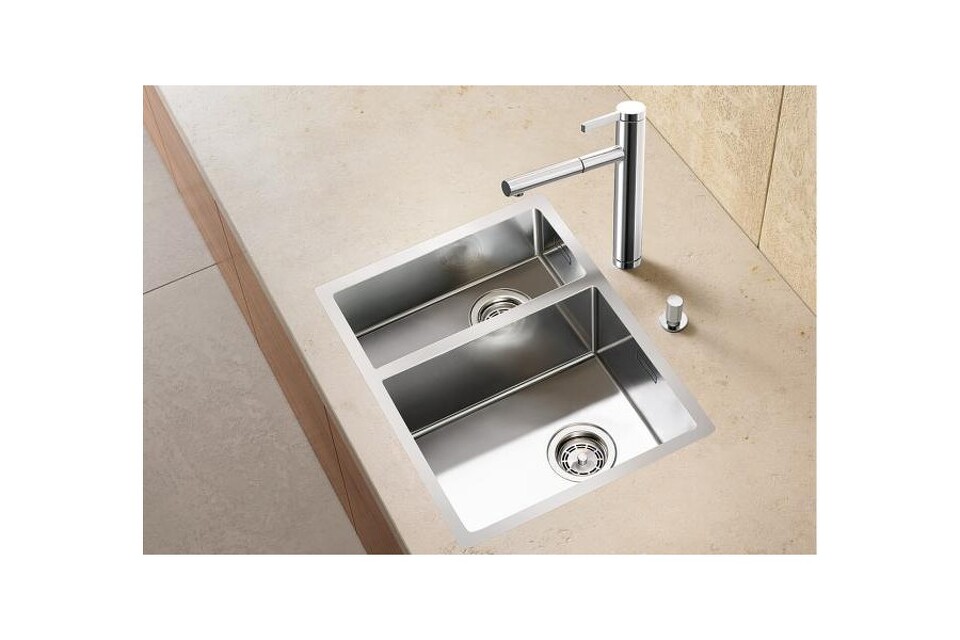 Фото Металлическая мойка Blanсo CLARON 340/180-IF (чаша справа) нерж.сталь зеркальная полировка с отв. арм. InFino
