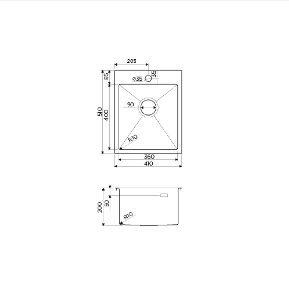 Глубина основной чаши, мм 200