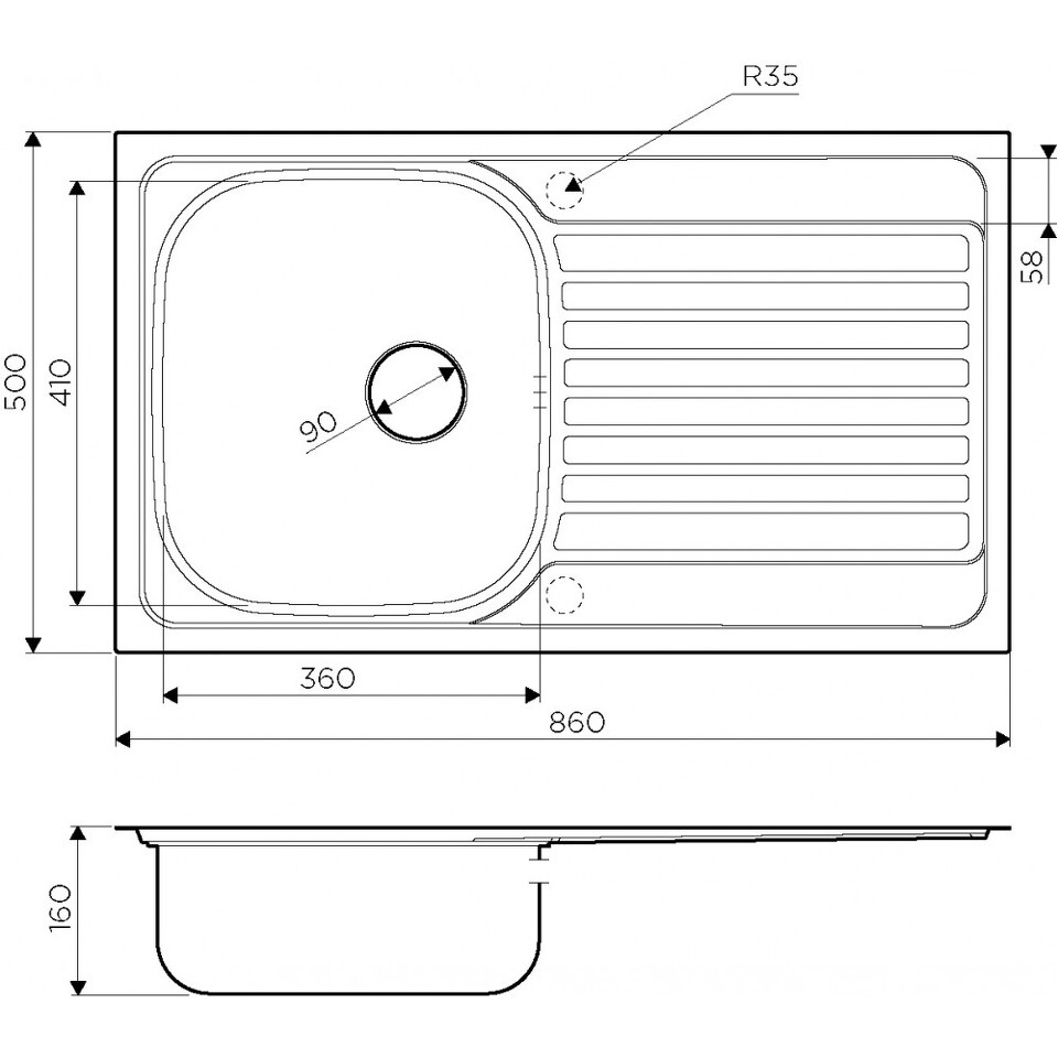 Отверстие под смеситель Нет