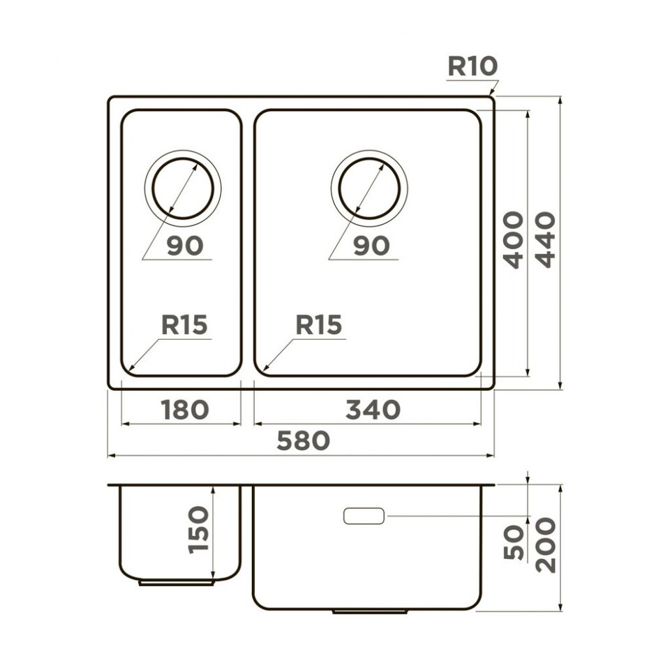Металлическая мойка Omoikiri Tadzava 58-2-U/I-R Ultra 15-IN нерж. сталь/нержавеющая сталь