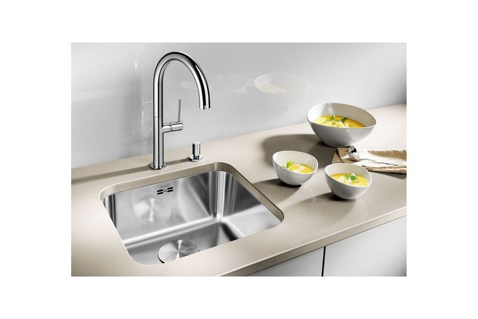 Как и другие стальные мойки Бланко, модель требует простого ухода — обычных моющих средств и протирания сухим полотенцем, чтобы исключить следы от потеков. Покрытие отталкивает жир и препятствует впитыванию пищевых красителей, поэтому уборка чаши не составит труда.
