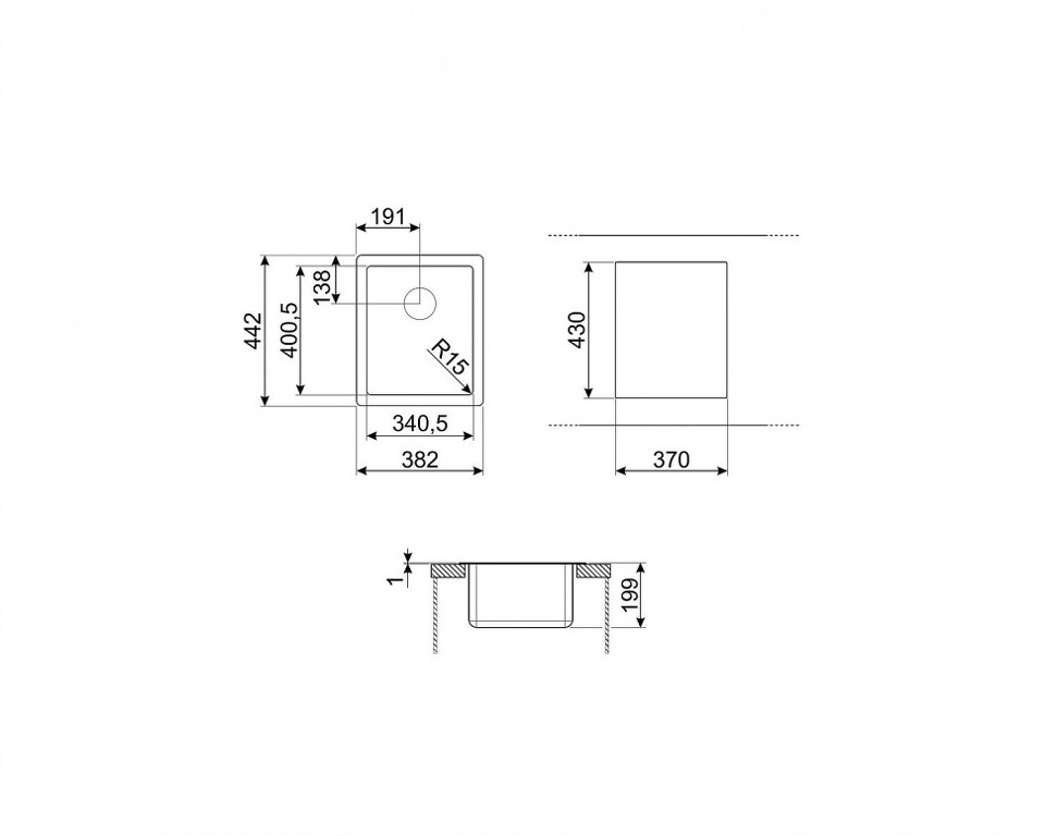 Глубина основной чаши, мм 199