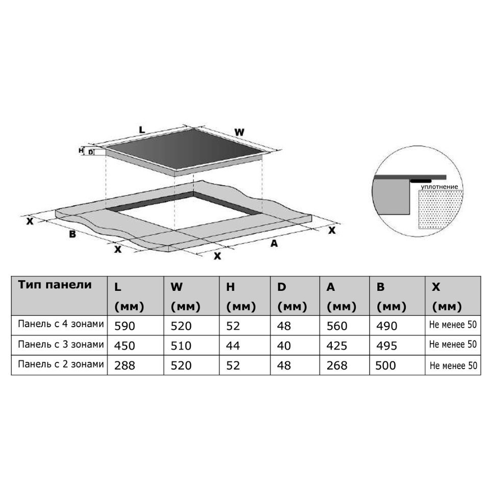 Размер варочной панели Домино