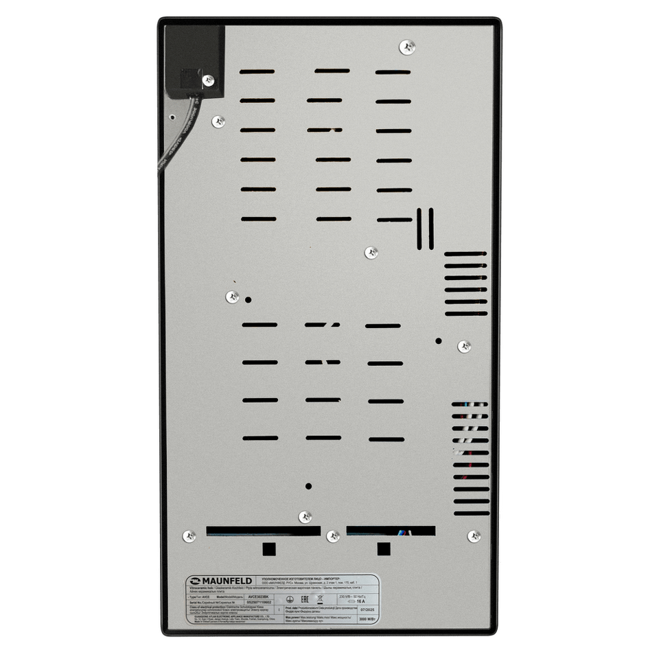Электрическая встраиваемая варочная панель шириной 29 см выполнена из ударопрочной стеклокерамики черного цвета. Благодаря идеальной гладкости и высокой износостойкости она легко очищается.