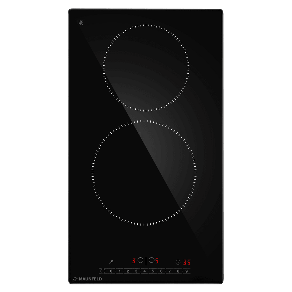 Электрическая встраиваемая варочная панель шириной 29 см выполнена из ударопрочной стеклокерамики черного цвета. Благодаря идеальной гладкости и высокой износостойкости она легко очищается.
