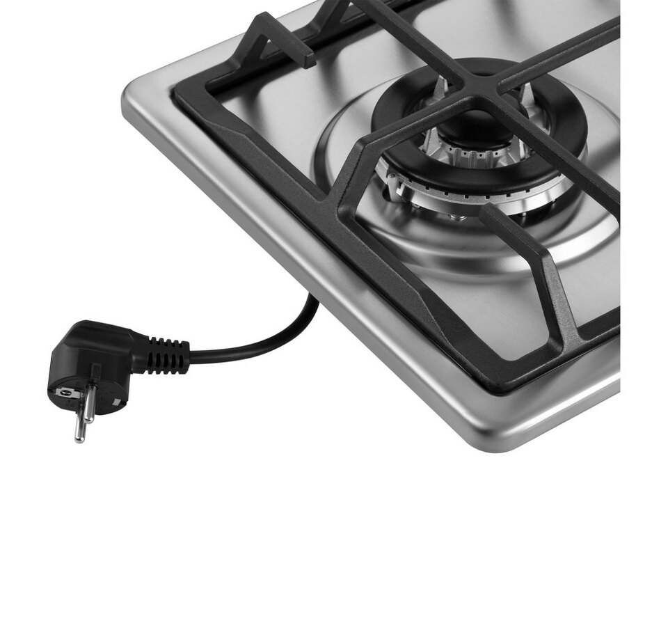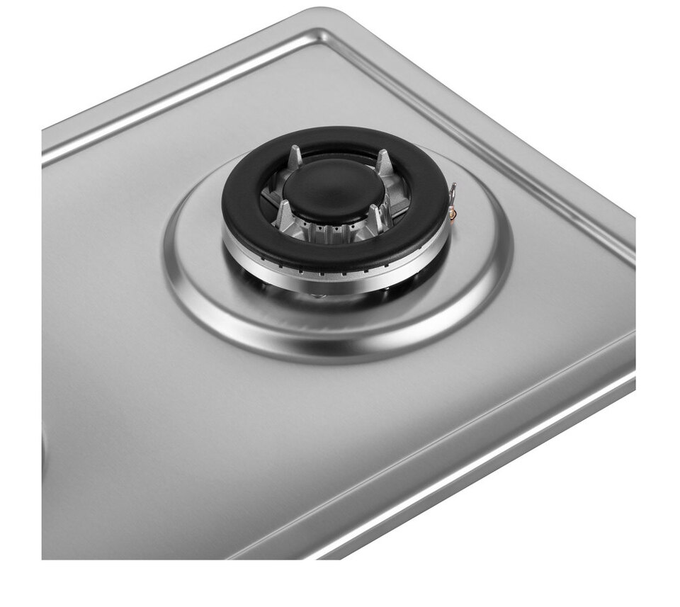 Компактная встраиваемая газовая варочная панель из нержавеющей стали.