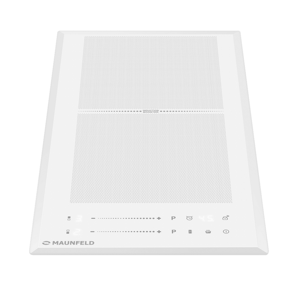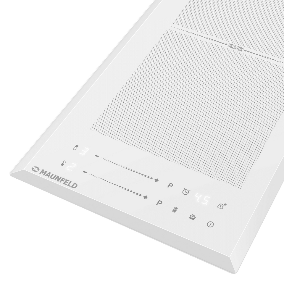 Индукционная варочная поверхность нового поколения с технологией постоянного нагрева, Flex Zone и быстрым нагревом Booster. Индикация управления белого цвета. Японская стеклокерамика Nippon Glass.