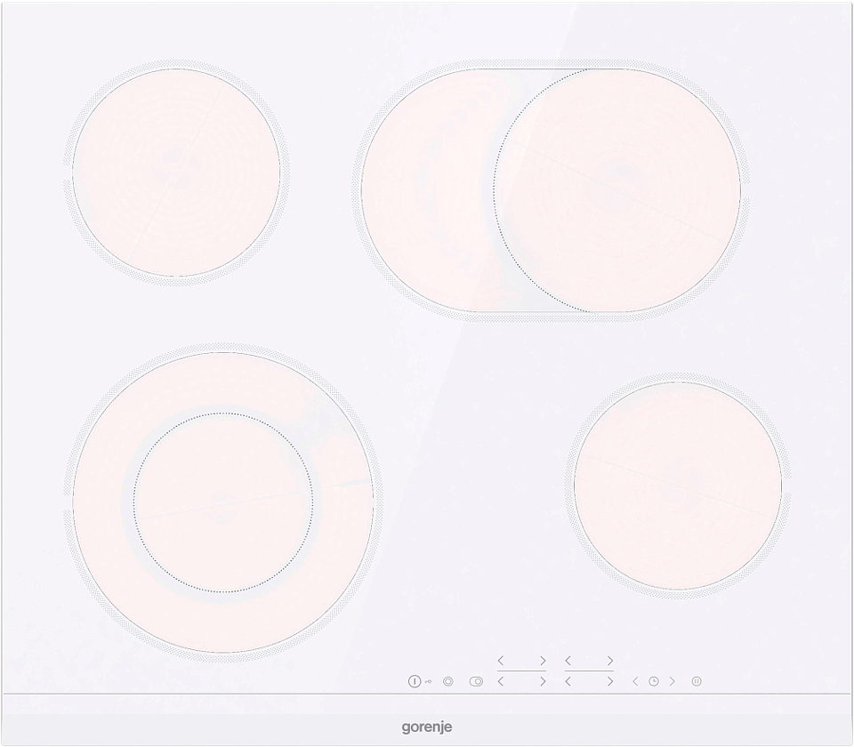 Независимая стеклокерамическая варочная панель Gorenje ECТ643WCSC — модель белого цвета со скошенным передним краем. Сенсорные переключатели позволяют настроить интенсивность приготовления, таймер и настроить специальные функции.