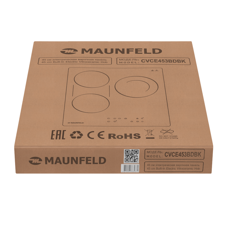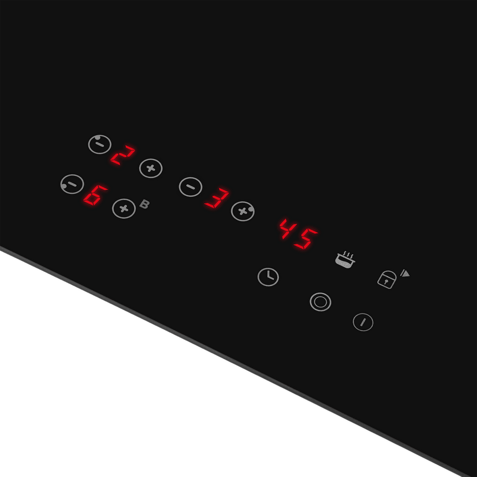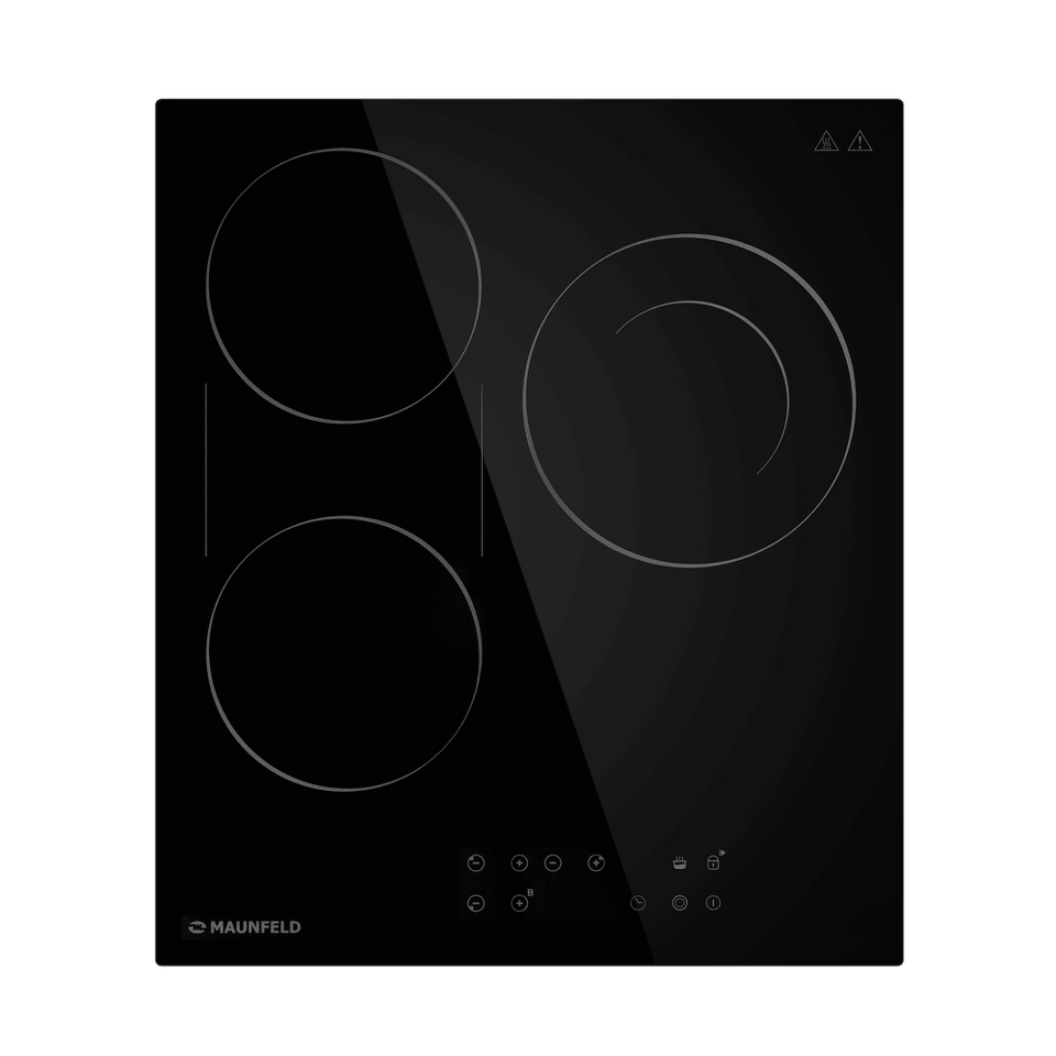 Стильная электрическая встраиваемая варочная панель шириной 45 см выполнена из ударопрочной стеклокерамики черного цвета. Благодаря идеальной гладкости и высокой износостойкости она легко очищается.