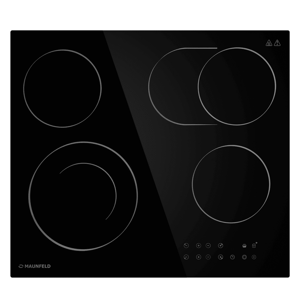 Стильная электрическая встраиваемая варочная панель шириной 60 см выполнена из ударопрочной стеклокерамики черного цвета. Благодаря идеальной гладкости и высокой износостойкости она легко очищается.