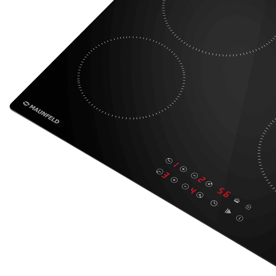 Стильная электрическая встраиваемая варочная панель шириной 59 см выполнена из ударопрочной стеклокерамики черного цвета. Благодаря идеальной гладкости и высокой износостойкости она легко очищается.
