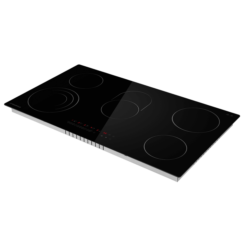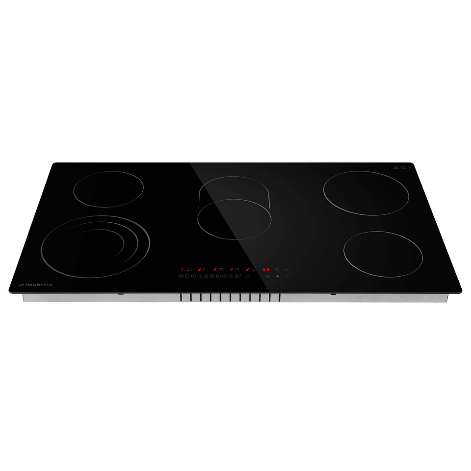 Стильная электрическая встраиваемая варочная панель шириной 90 см выполнена из ударопрочной стеклокерамики черного цвета. Благодаря идеальной гладкости и высокой износостойкости она легко очищается.