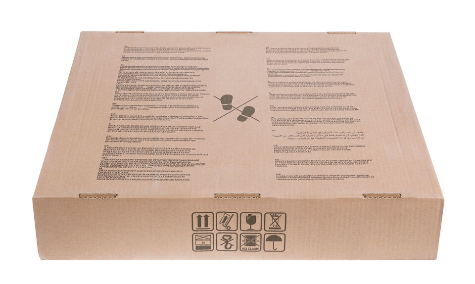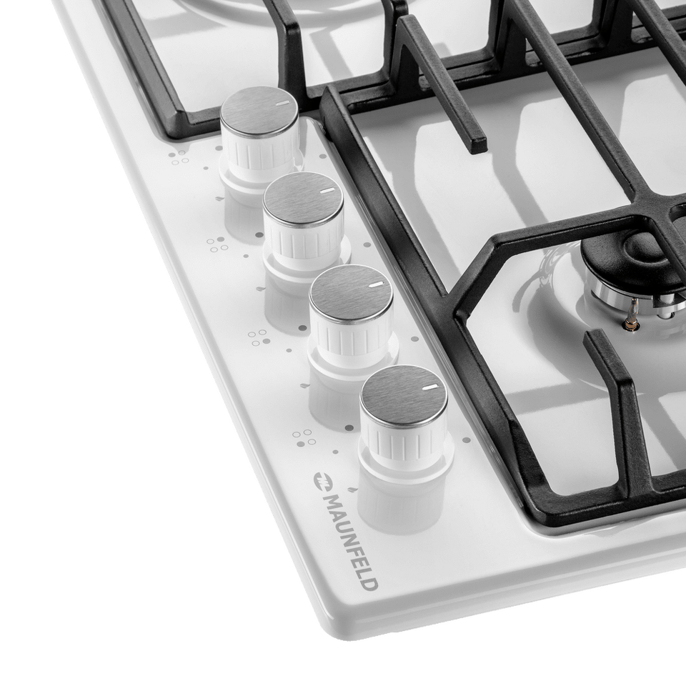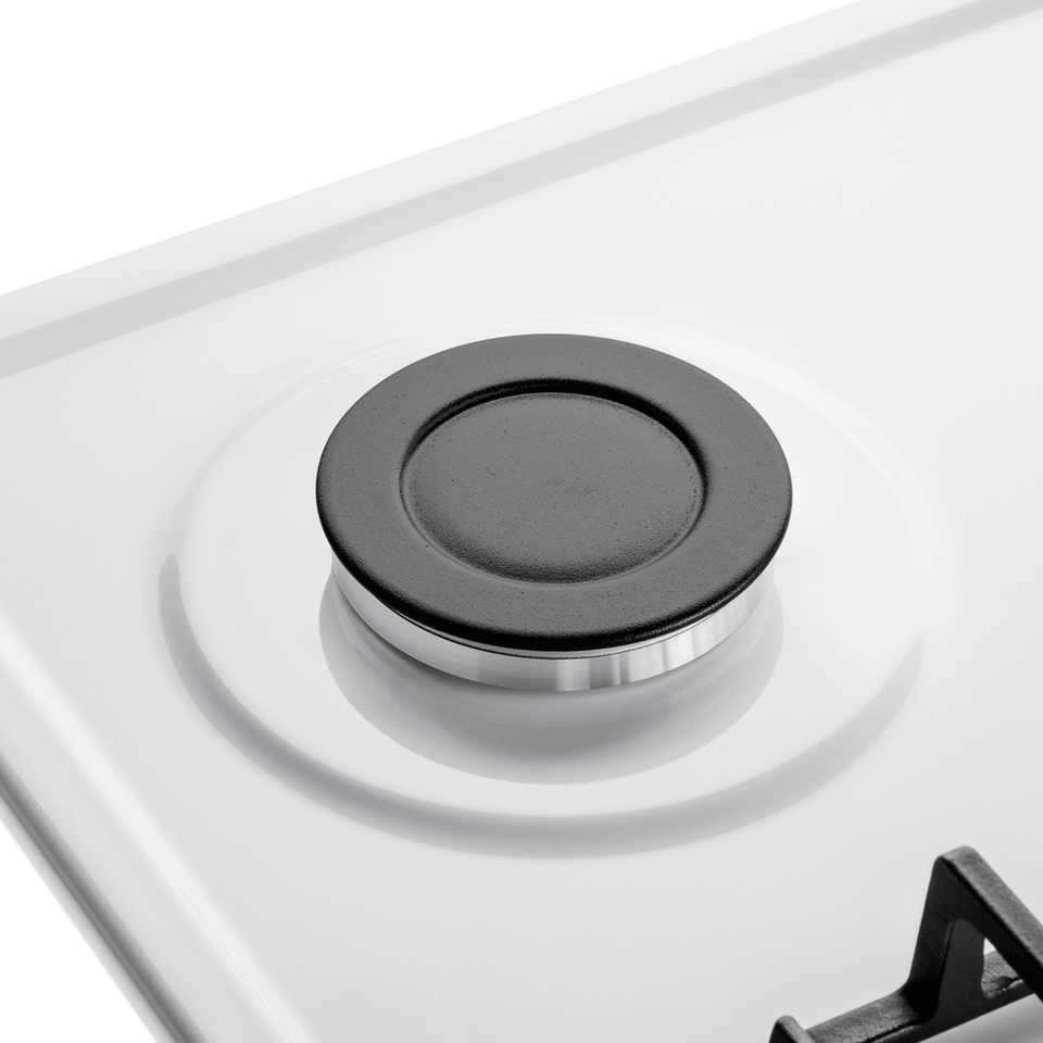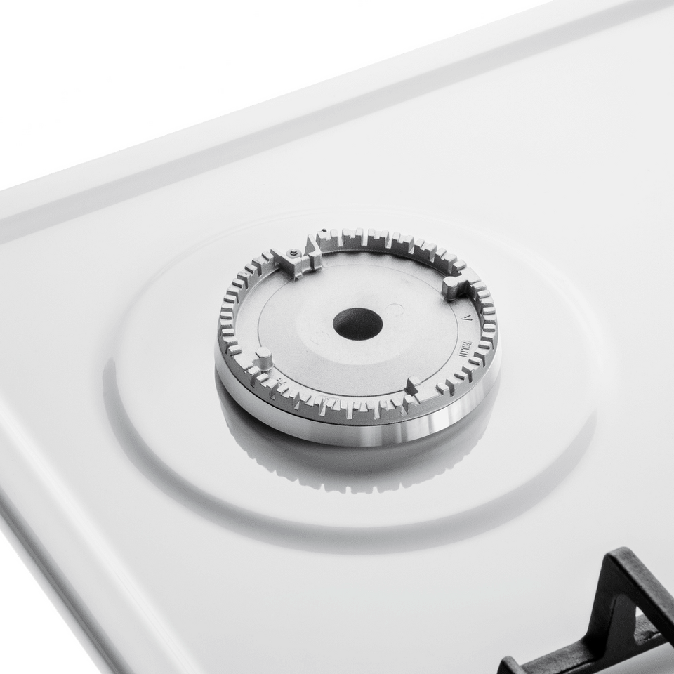 Панель выполнена из металла, покрытого термостойкой прочной эмалью белого цвета. Четыре  стандартные итальянские конфорки SABAF мощностью 1000 Вт, 1700 Вт, 1700 Вт и 2600 Вт спроектированы таким образом, что огонь не перегревает ни чугунные решетки, ни ручки управления.