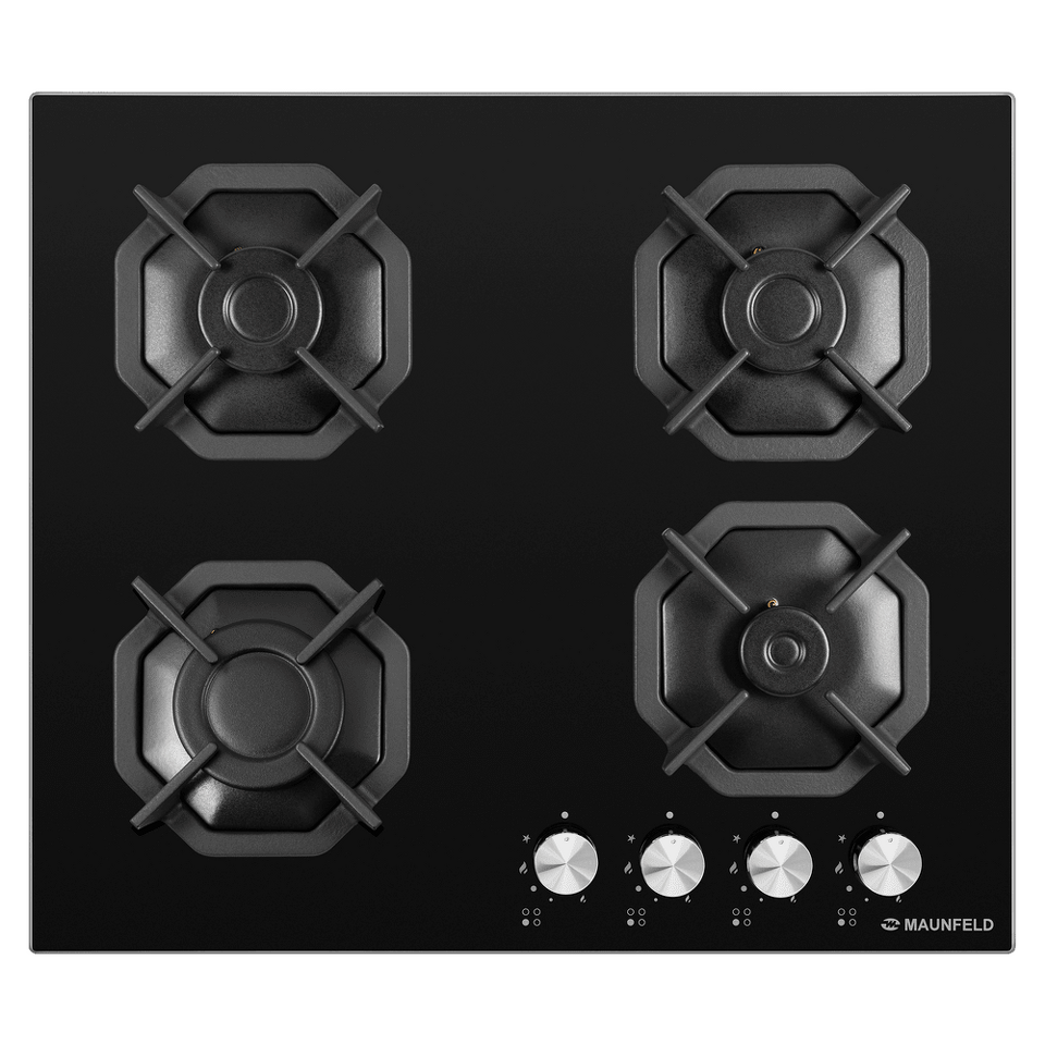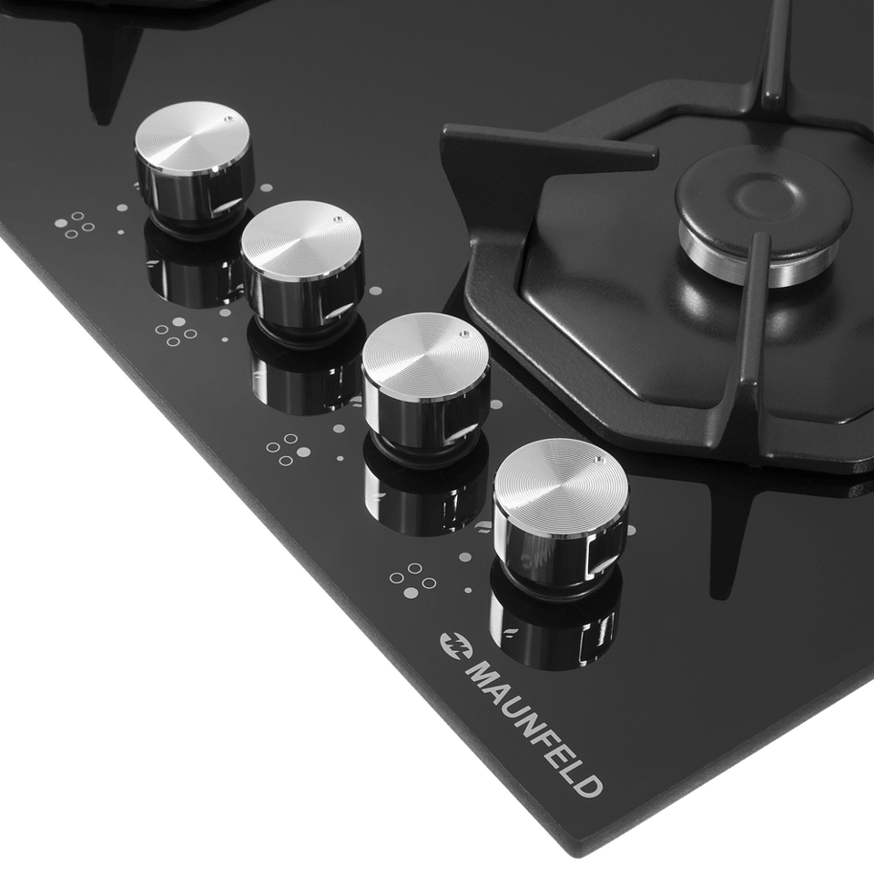 Восьмиугольные чугунные подставки – это запатентованное изобретение MAUNFELD, прочные и долговечные. Сами конфорки спроектированы таким образом, что огонь не перегревает ни чугунные решетки, ни ручки управления.