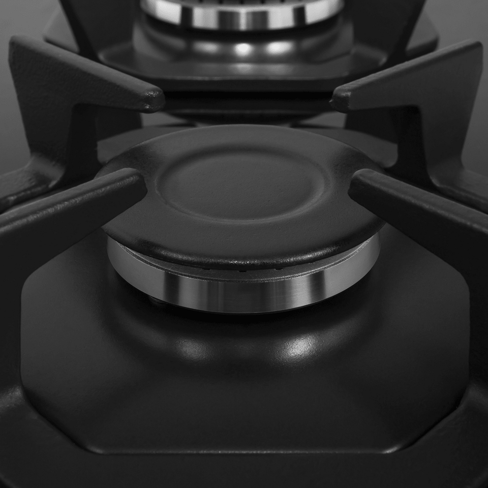 Итальянские горелки "SABAF" (с матовыми крышками), спроектирована таким образом, что огонь не перегревает решетки и ручки управления.