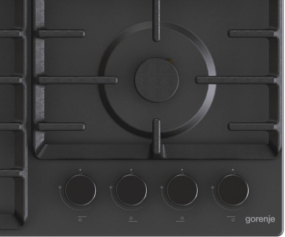Независимая газовая варочная панель Gorenje GW642SYB относится к коллекции Simplicity, которая известная своей эстетичностью, лаконичным дизайном и эргономикой. И это подтверждает данная модель. Её поверхность, а также фурнитура исполнены в матовом чёрном цвете. Ему вторят и чугунные решётки ProGrids, которые придают стиль, а также функциональность. Они усилены, поэтому готовы выдержать большой вес посуды, а также воздействие открытого огня. Кроме того, их элементы служат неким подобием полозьев, по которым, не поднимая, можно перемещать тяжёлые кастрюли с конфорки на конфорку.