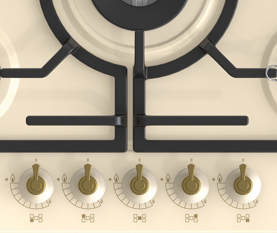 Независимая газовая варочная панель Gorenje GW7C51CLI подойдёт тем, кто ценит как внешний вид, так и отличную функциональность. Её ширина составляет целых 75 см, а сами горелки расположены настолько грамотно, что вы сможете задействовать все зоны нагрева одновременно. Дизайн прибора относится к коллекции Classico. Несмотря на общий ретро-стиль, она так названа из-за приверженности к классическому подходу в приготовлении пищи. Цвет слоновой кости удачно дополняется фурнитурой под бронзу, а также чёрными держателями.