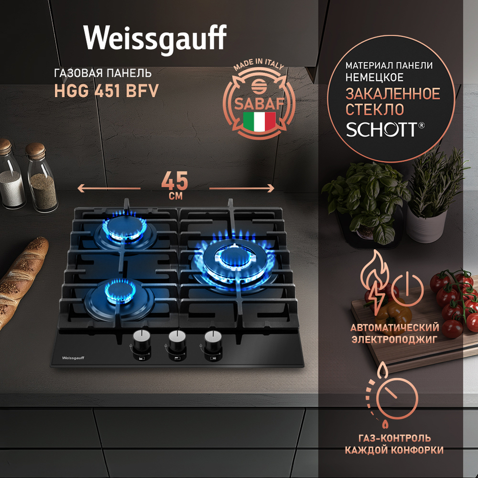 Фото Газовая варочная панель Weissgauff HGG 451 BFV