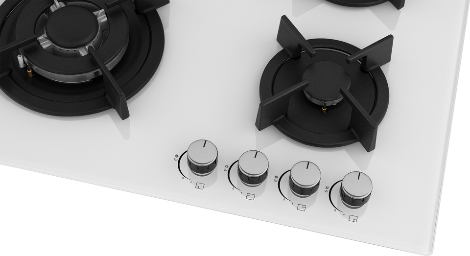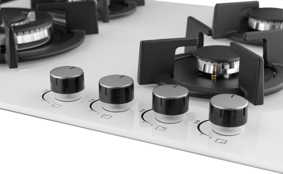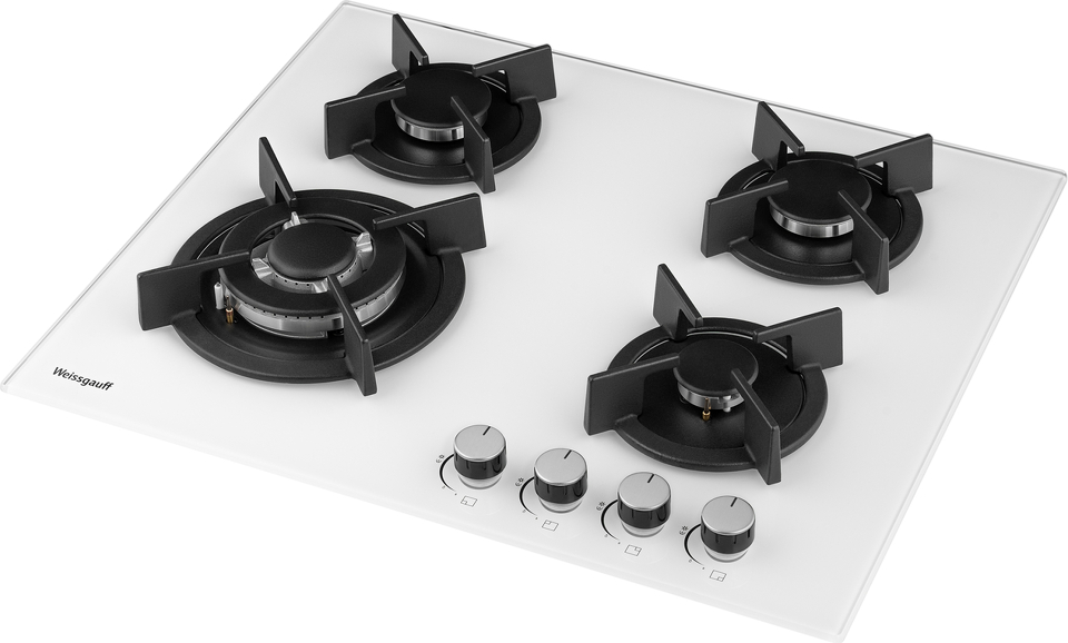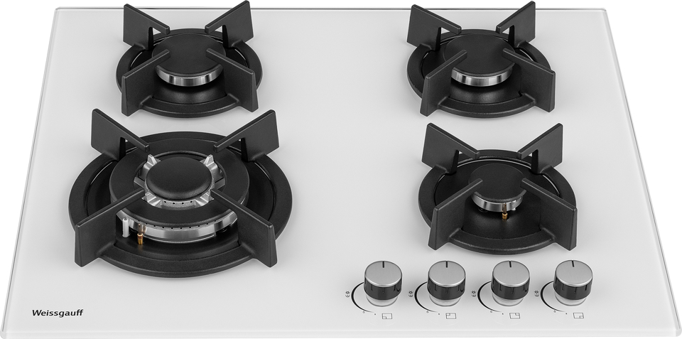 Встраиваемая независимая газовая панель Weissgauff шириной 60 см, исполненная в закалённом белом стекле - это стильное и компактное решение для вашей кухни!