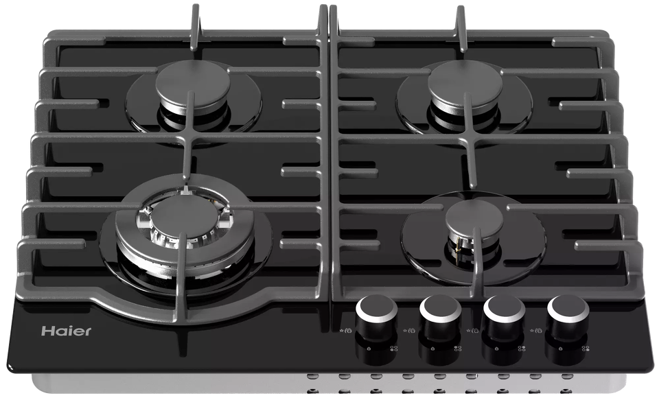 Газовая варочная панель Haier HHX-G64RFB на чёрном закалённом стекле смотрится лаконично и стильно. Кроме классических конфорок разного диаметра, панель оснащена двухконтурной конфоркой повышенной мощности 3,8 кВт — с ней легко и быстро приготовятся блюда даже в объёмных кастрюлях, больших сковородах. Двухконтурная конфорка, которую также называют ВОК-конфоркой, расположена в передней части панели, но с противоположной стороны от регуляторов. В каждую конфорку интегрирован электроподжиг — пламя легко зажигается без спичек. Если вдруг пламя случайно погаснет, сработает функция «газ-контроль» — подача газа будет автоматически перекрыта. Чугунные решётки обеспечивают устойчивость посуды во время готовки, они съёмные — это облегчает уход. Поворотные регуляторы управления конфорками, изготовленные из металла, вынесены в переднюю часть панели. Haier HHX-G64RFB — стильная, удобная, безопасная и практичная варочная панель для вашей кухни.
