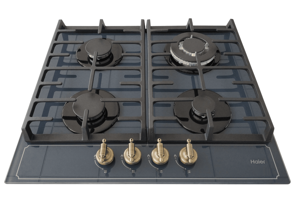 Газовая варочная поверхность HHX-M64ATQBB с чугунными решетками для посуды из коллекции Antique темно-серого цвета. Встроенный поджиг и газ-контроль. Мощная двойная конфорка для приготовления больших блюд.