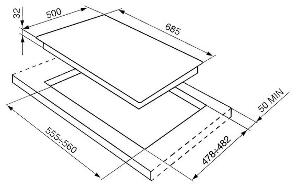 Размер варочной панели 70см