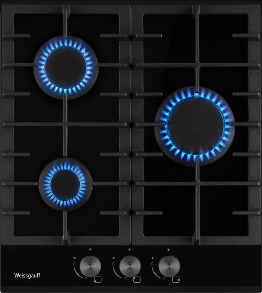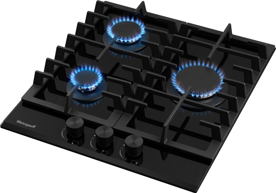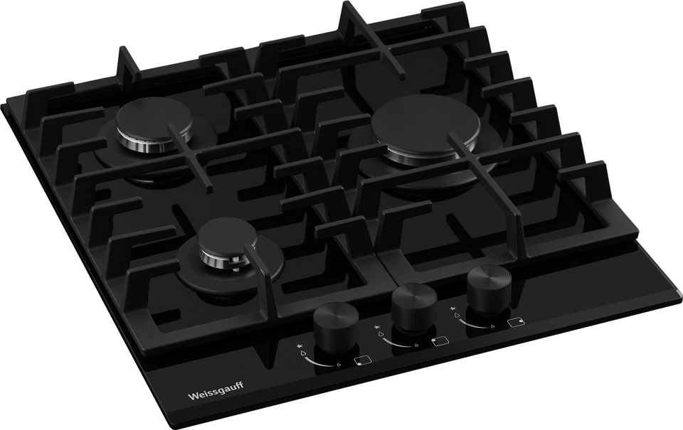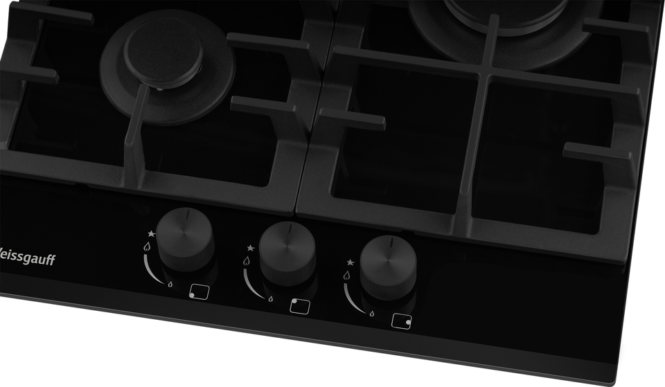 Встраиваемая независимая газовая панель Weissgauff шириной 45 см, исполненная в закалённом чёрном стекле - это стильное и компактное решение для вашей кухни!