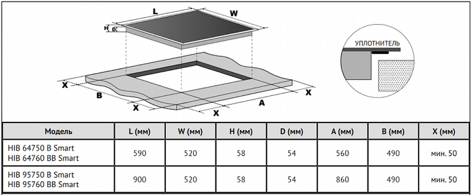 Размер варочной панели 60см
