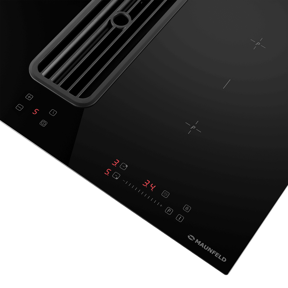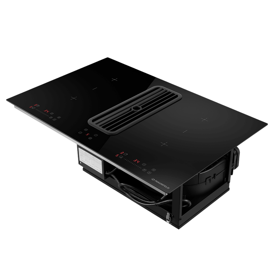 Революционная модель MAUNFELD AVSI804SBH — индукционная варочная панель на 4 конфорки со встроенной мощной вытяжкой. Данное устройство сочетает лучшие технологии, используемые в наших варочных панелях и вытяжках.
