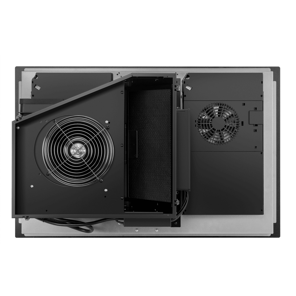 • Вытяжной вентилятор с производительностью 1050 м3/ч мгновенно очищает воздух от пара, дыма и запахов, идущих от варочной поверхности.