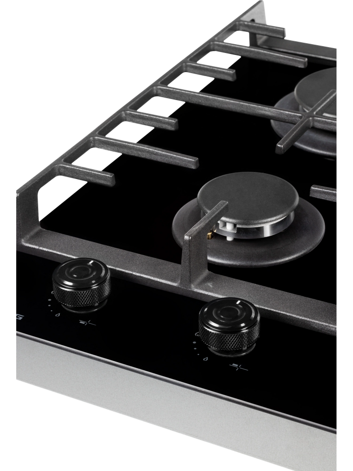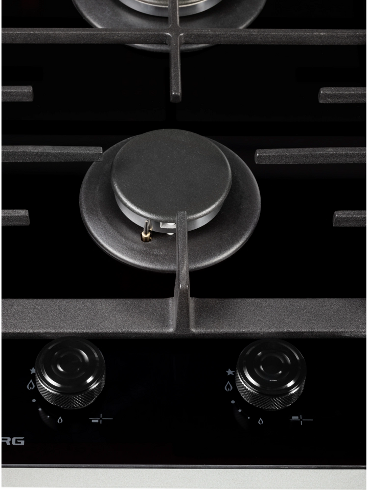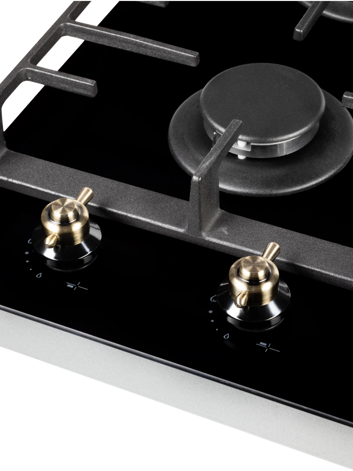 Мощные чугунные решетки обеспечивают устойчивость посуды любой формы и веса. К технике прилагается два комплекта декоративных ручек — классические и современные, что позволяет адаптировать внешний вид панели к интерьеру кухни.
