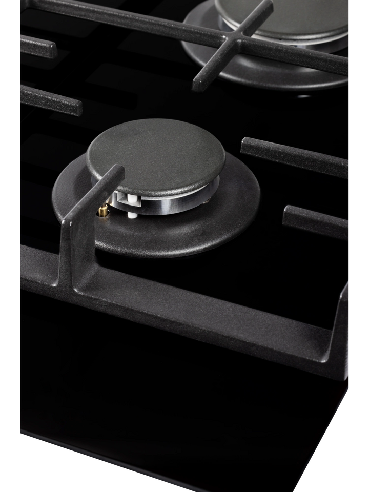 Для приготовления на газе предусмотрены три конфорки с автоматическим электророзжигом, в том числе горелка WOK. Ее тройное пламя позволит справиться с азиатскими блюдами и быстрым разогревом или кипячением. За безопасность отвечает система газ-контроля, перекрывающая подачу газа при затухании пламени.