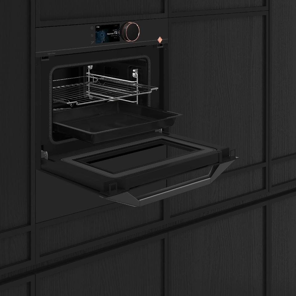Интерфейс оснащен простым и интуитивно понятным цветным дисплеем с высоким разрешением, который отображает меню функций и режимов: «Овощи», «Мясо», «Деликатесы» и т.д. Каждый пункт меню сопровождается уникальной и реалистичной иллюстрацией. На экране отображаются потрясающие фотографии при демонстрации бесконечного числа блюд и рецептов в меню «Шеф-повар», «Кулинарная книга», «Низкая температура», «Французская кондитерская» и «Сушка».