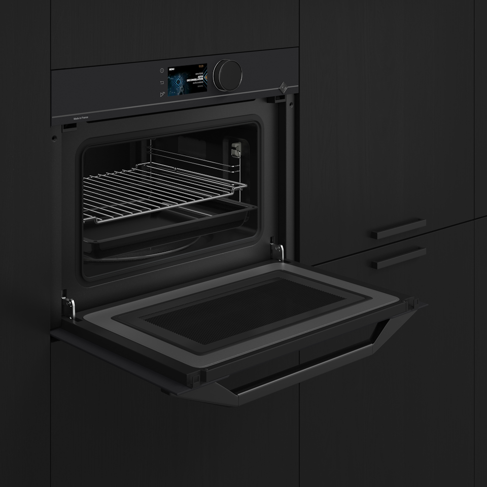 Интерфейс оснащен простым и интуитивно понятным цветным дисплеем с высоким разрешением, который отображает меню функций и режимов: «Овощи», «Мясо», «Деликатесы» и т.д. Каждый пункт меню сопровождается уникальной и реалистичной иллюстрацией. На экране отображаются потрясающие фотографии при демонстрации бесконечного числа блюд и рецептов в меню «Шеф-повар», «Кулинарная книга», «Низкая температура», «Французская кондитерская» и «Сушка».