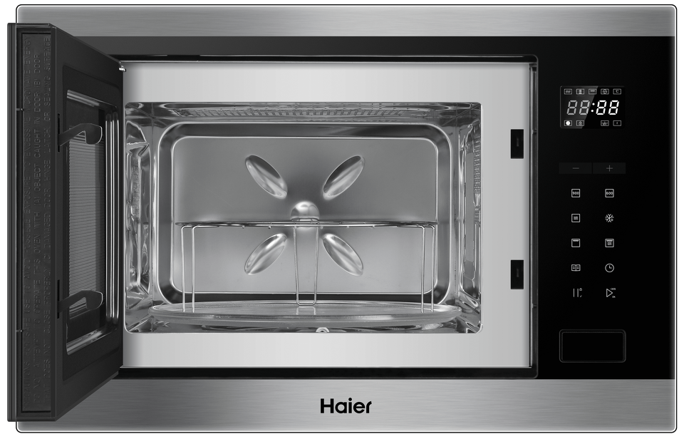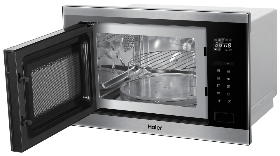 Встраиваемая микроволновая печь с грилем HMX-BTG259X дополнит комплект встраиваемой техники на Вашей кухне, особенно гармонично будет смотреться в комплекте с духовым шкафом с отделкой из нержавеющей стали. Вместительная внутренняя камера объемом 25 литров с поворотным столом и встроенный гриль позволят быстро и эффективно подогреть или приготовить Ваше блюдо. Микроволновая печь оснащена автоматическими режимами размораживания и приготовления таких блюд, как пицца, макароны, картофель или овощи (всего 8 автоматических режимов).