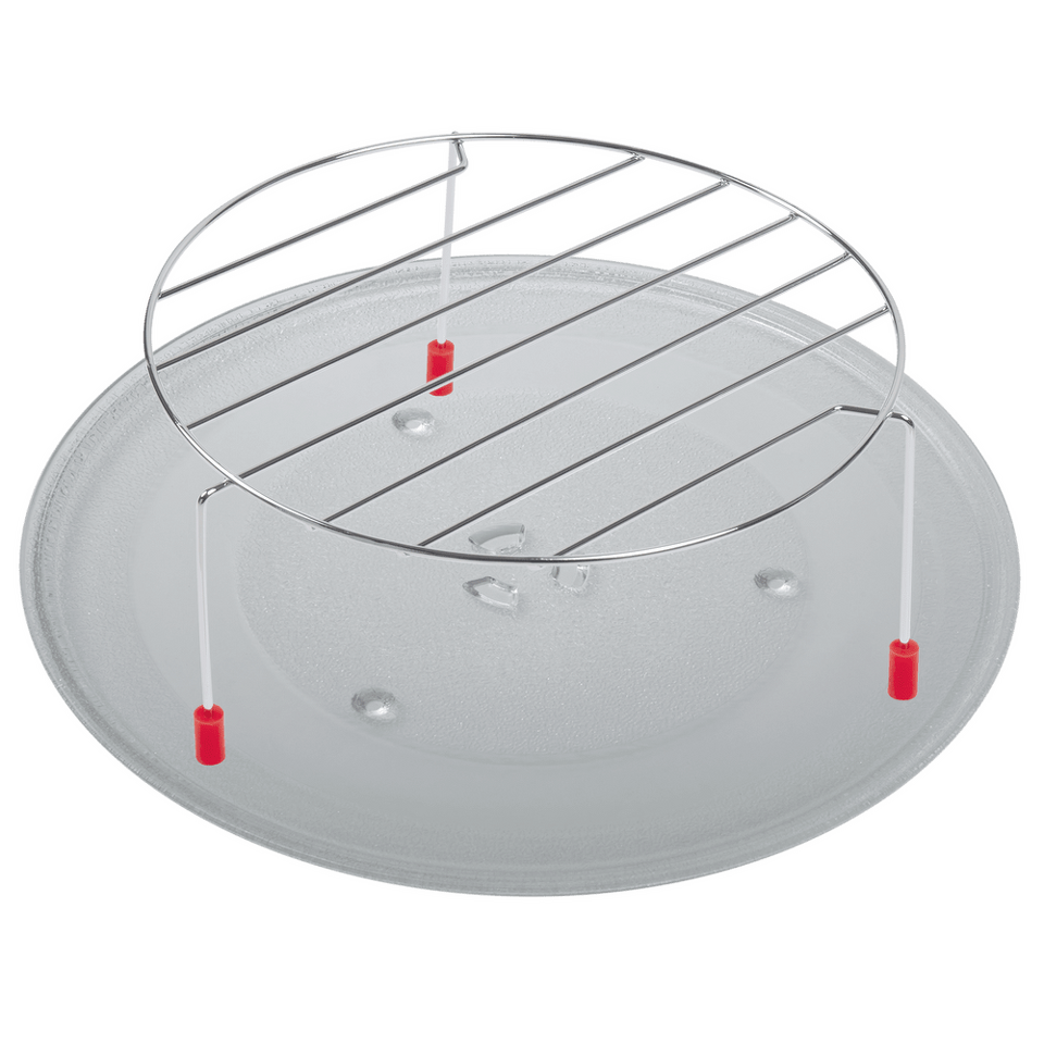 Про безопасность тоже подумали: есть блокировка от детей. Если дверь прибора закрыта, он просто не включится. В комплекте идет большая тарелка для поворотного стола диаметром 315 мм и решетка для гриля. Есть опция логичного выбора настроек и звуковой сигнал об окончании работы, который легко отключить.